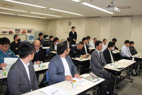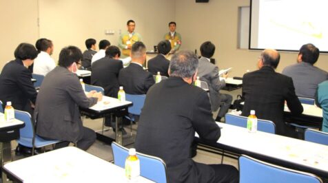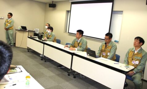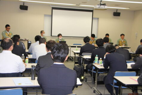 事業所見学は長田様の進行のもと、浜岡地域事務所 総括・広報グループの榊原部長様から、浜岡原子力発電所の沿革や概要についてご説明をいただきました。