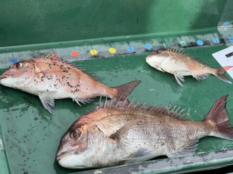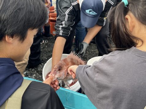 総勢100人を超える参加者が網を手繰り寄せると、、、大きなタイや大小さまざまな魚やイカが入っていて、大きな歓声が湧きあがりました。