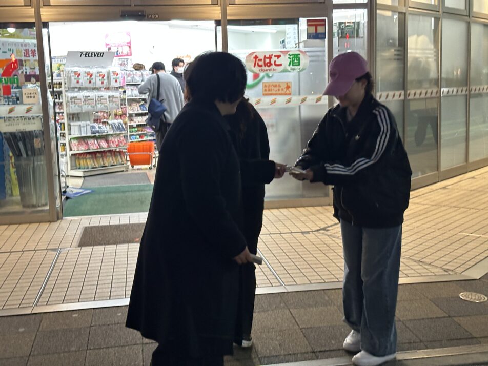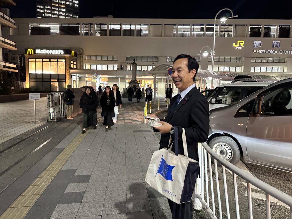 静岡地協推薦市議の方々にもお越しいただい、いっしょにチラシ入りのティッシュを配布していただきました。