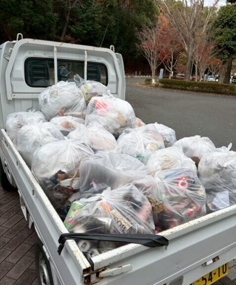 皆さまのがんばりで、トラックいっぱいのごみが集まりました。