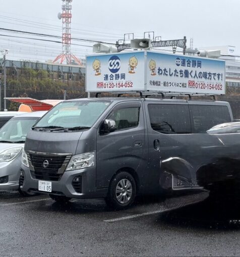 働く人が、安心して働く環境を守るため、東遠地協の黄色いジャンバーを着て、街宣車を走らせ、掛川市内を中心に実施しました。