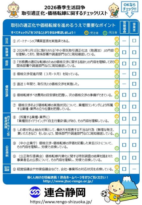 2026春季生活闘争 取引適正化・価格転嫁に関するチェックリスト