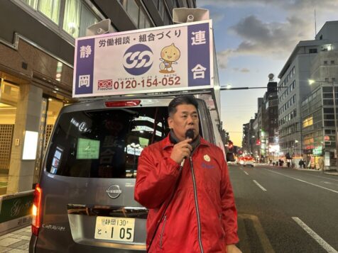 静岡県の最低賃金が改正されたことを受け、県内事業者および県内で働く人に広く周知するため、大規模な街宣活動を実施しました。労働組合のない職場で働く人たちの賃金の底上げを図るためには、この地域別最低賃金が重要な役割を果たします。この日は、執行委員、構成組織・地協代表者全員で働く人がその価値に見合った賃金を受け取る必要性を訴えました。みなさん、12月分の給与明細は必ずご確認ください。