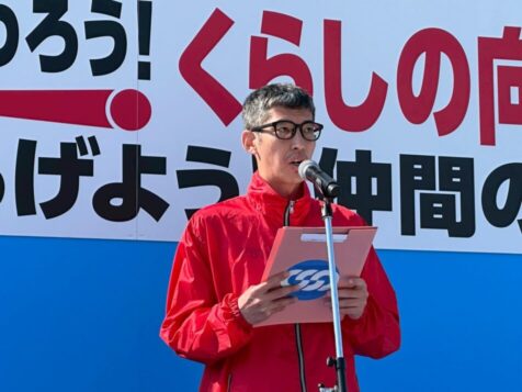 | 今春闘の重要性を訴える角山雅典会長 |