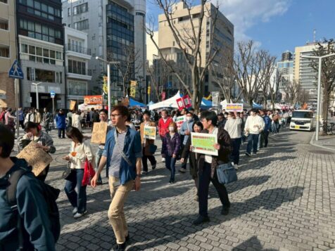 集会の締めくくりとして集会アピールが会場全体で確認されました。デモ行進の前にシュプレヒコールの練習を行い、その後4梯団に分かれ駿府城公園から常磐公園まで、横断幕やプラカードなどを用い「生活の質を上げよう!」「価格転嫁を実現しよう!」「賃金格差をなくそう!」「働きやすい職場をつくろう!」などとシュプレヒコールをあげながら、デモ行進を行いました。
