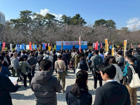 連合静岡は、2月28日(土)静岡市葵区駿府城公園・富士見芝生広場において加盟構成組織・単組およそ1,000名が集まり、大規模集会&デモ行進を実施しました。